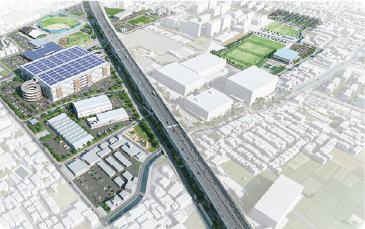 スポーツ施設、物流施設、住宅、公園、ものづくり企業誘導などを計画。スポーツ・にぎわい・交流機能の導入により、活力あふれる地域づくりを推進します。