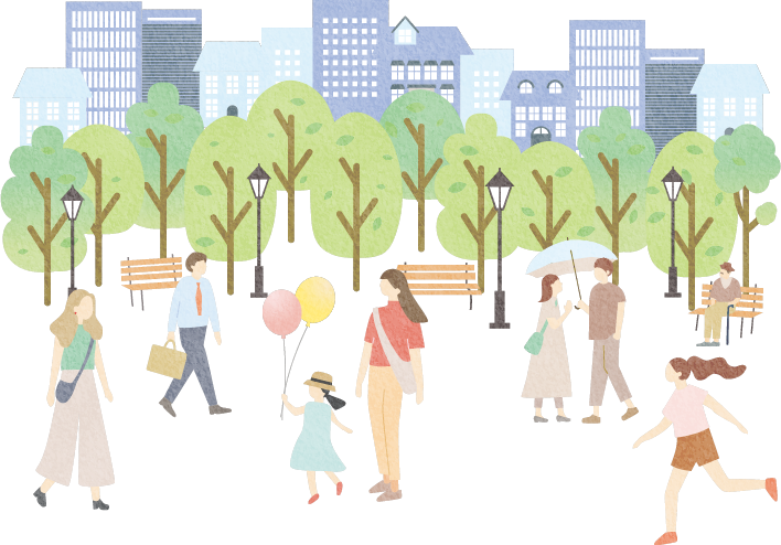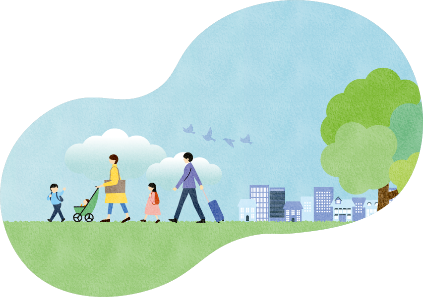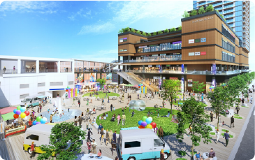 交通結節点に相応しい駅前広場の整備、生活を支える利便性の高い商業やウォーカブルな動線・空間を設け、さらなる「賑わい」を創出。子育て世代から高齢者まで、多様な世代が「安心して、暮らし続けたくなるまち」を目指します。
